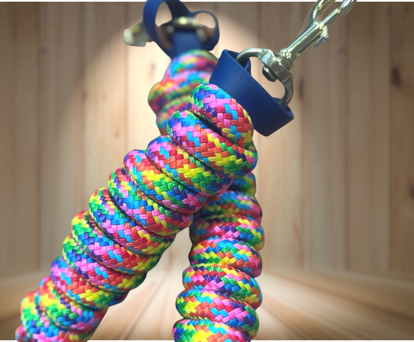 Our standard length lead ropes are made from top quality polyester rope. It’s grippy yet doesn’t get stuck in a tight knot easily. We spray them with a water resistant coating to help with water absorption.